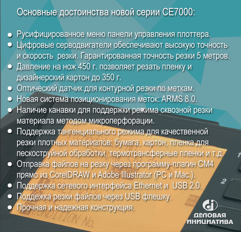 Режущий плоттер CE7000-60 отличается высокой точностью и скоростью резки. Режущий плоттер идеально подходит для изготовления наружной и внутренней рекламы, а также для производства рекламной и полиграфической продукции.